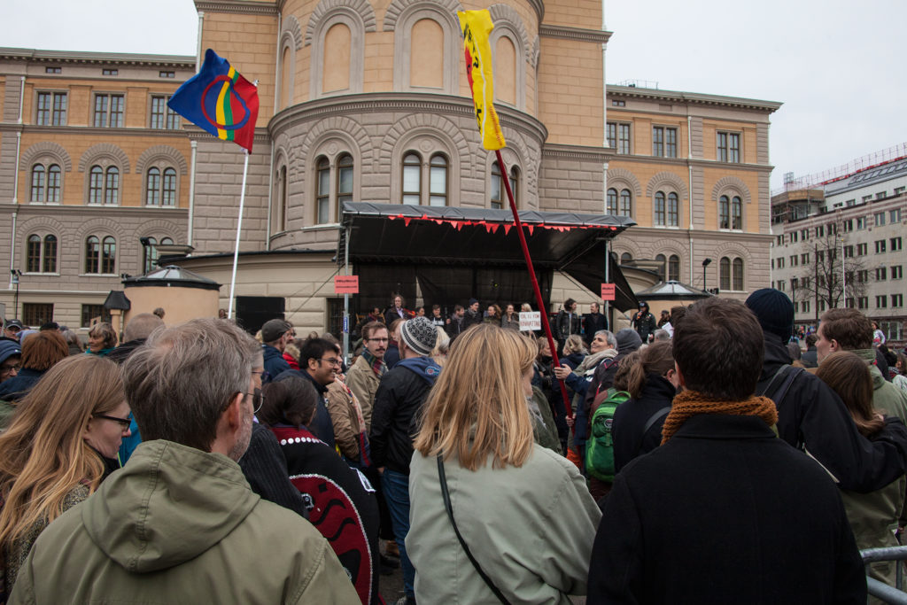 We bring you some pictures from Norra Bantorget before the march.
