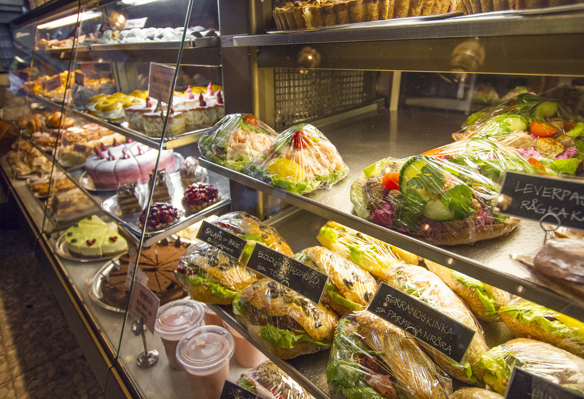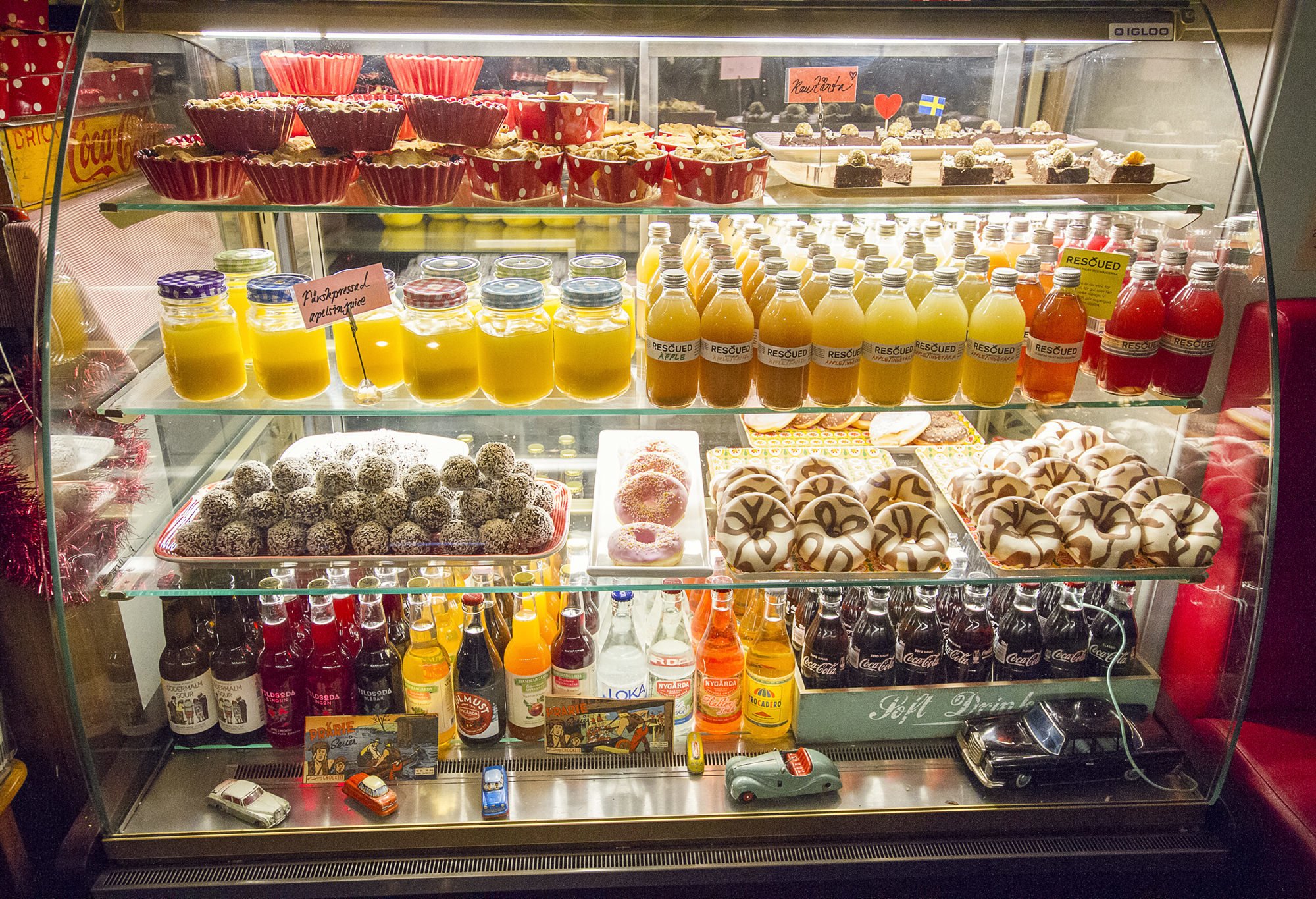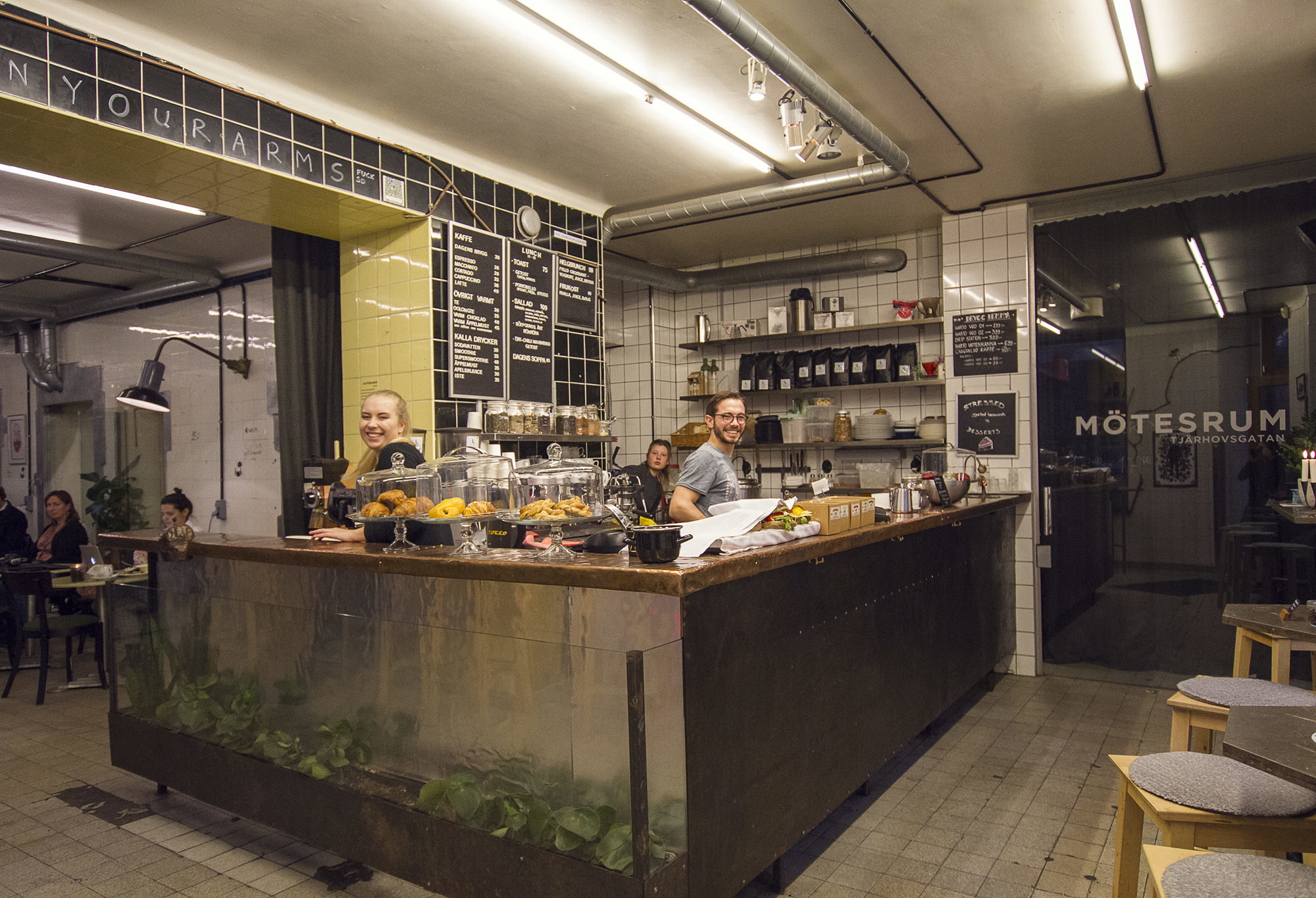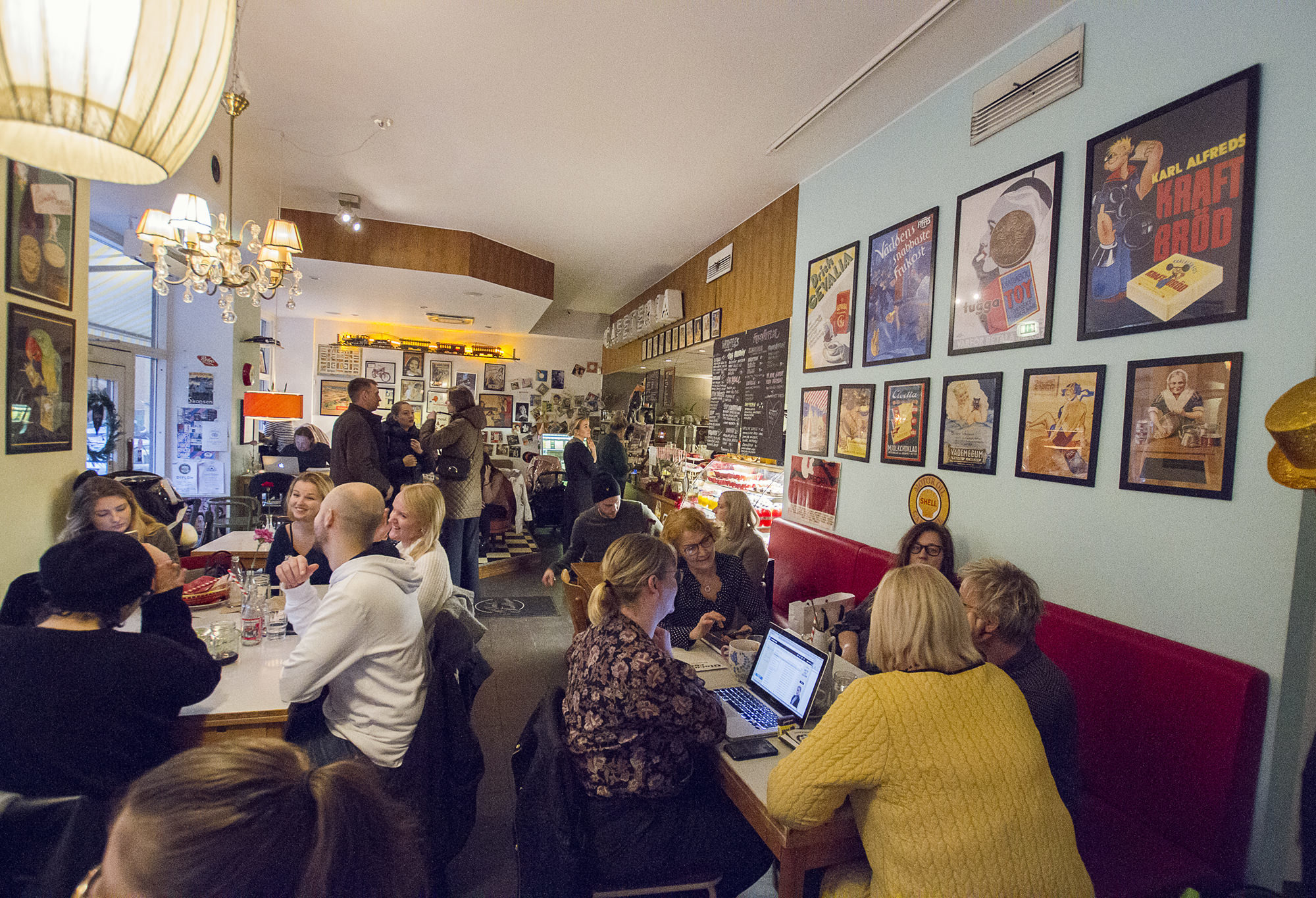 Imagine American diner meets coffee meets Södermalm – and you get Älskade Traditioner. This is a very cool coffee place that looks and feels like taken out of 1950’s USA. There are posters of classic rock’n roll stars and old American adverts, vintage toys and clothes and even motorcycles decorating its walls and windows. The music and the furniture will do the rest of the job in taking you to those good old days. Älskade Traditioner means “beloved traditions” and in the tradition of making coffee, they have the usual warm beverage options, plus milkshakes. In their food menu you’ll find their famous waffles, sweet and salty, with numerous fillings and toppings. We can highly recommend their vego-toasted waffle. But don’t stop there, do try some of their pastries! They’re just as good as they look. Make sure you visit them during off-peak hours, which are 11:30-12:30 and after 4pm as it tends to get super busy, regardless the day.