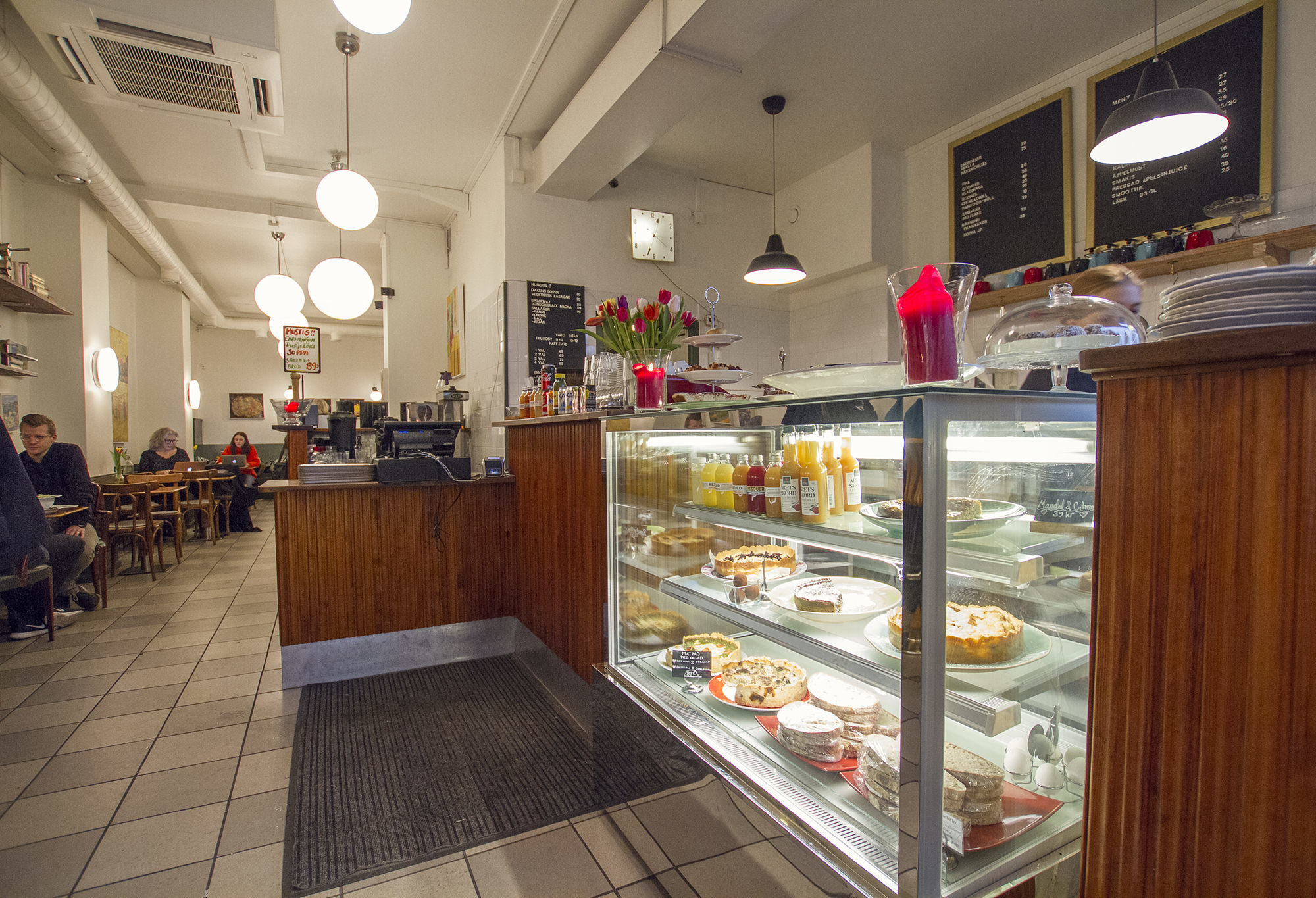 In the corner of Bondegatam and Nytorsgatan you will find String, with its funky decoration consisting of old and very mixed furniture and colourful paintings in a bit kitschy style and we love that! The staff is very friendly and are happy to talk you through their menu of drinks and sandwiches, salads and sweet tempting treats. Another plus point for String is that they have two floors with plenty of room to sit and enjoy their typical Södermalm-cool atmosphere.