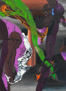 Danish artist Adam Saks’s oil paintings and woodcuts of still life and vanitas symbols are combined with elements from contemporary imagery and pop culture: ornamental petals from poppy and hibiscus, knuckle duster and skeleton bones, ceramic objects and debris are all intertwined in a kaleidoscopic universe that reflects the fragility of human existence.