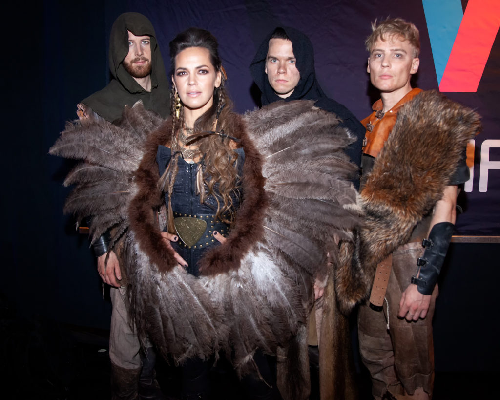 Folk metal or schlager rock, not sure what to make of this group, or is it just the frontwoman Arven Latour? It seems she has dumped the band, or were they just hired hands for the press conference? In any case it’s just her and the dancers on stage. They are actually signed to a game developing company instead of a traditional record label, so the Crusader Kings gamer community will be familiar with their music.