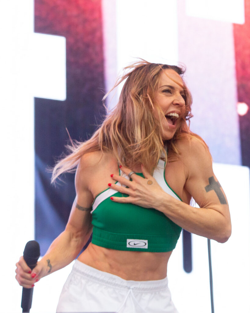 The Swedish summer weather was not the best during the festival day and while the raining had taken a break ahead of Mel C‘s show-time, it started to rain again while she was on stage. But she was a good sport about it and told the audience she was happy to be back in Stockholm after such a long time, and said she would rather be singing in the rain for us than be at Mel B’s third wedding, which was on the same day. Posting photos of the show afterwards, she did say things got a bit soggy.