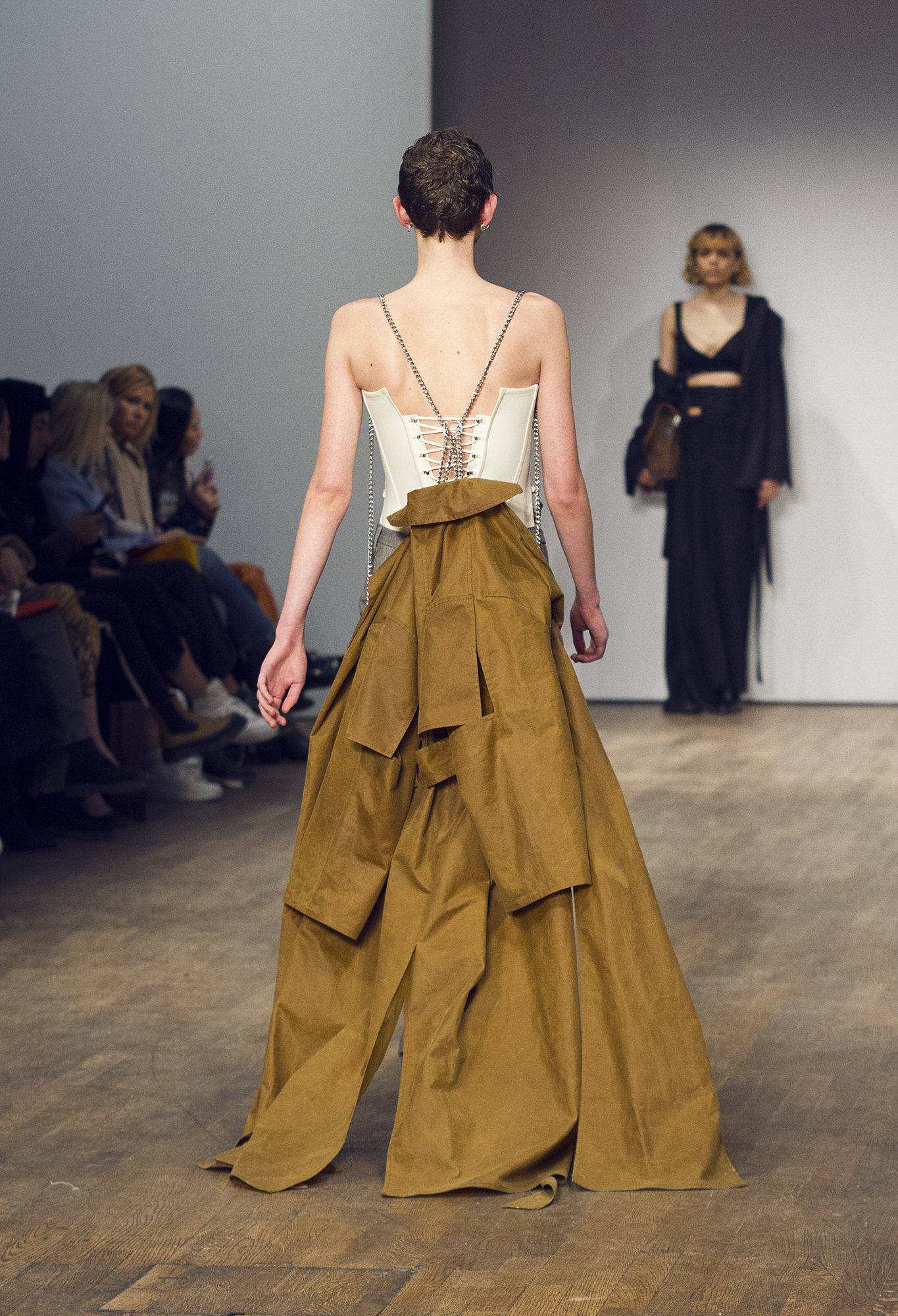 First, I make sure I have my camera in manual and that the light balance is set to interior light. I always go with my camera and a zoom lens. If I’m sitting in the front row with the rest of the audience, a 18-55mm or a 24-70mm will do. Sometimes I choose to stand with the other photographers at the end of the catwalk for better frontal photos, for which I use a 70-200mm.
