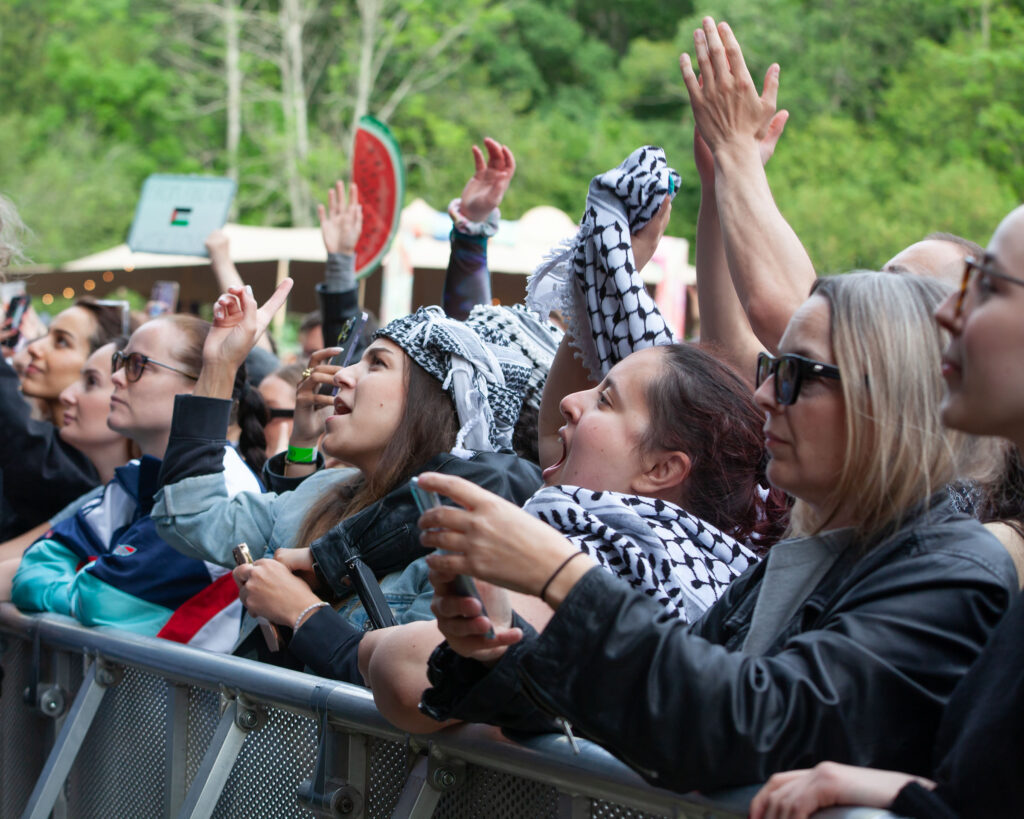 Beside Raye, Saint Levant has to be one of the most spot-on and current bookings of the festival, as this is an artist on many music fans’ lips right now. He has also been outspoken about the liberation of Palestine and the horrible situation in Gaza, and there were indeed many showing support to Palestine in Saturday’s audience, wearing keffiyehs and waving the flags.