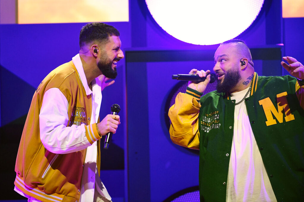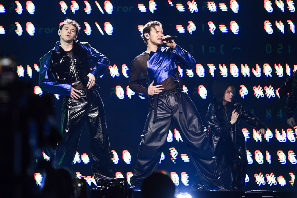 Medina‘s Sami Rekik and Ali Jammali are back after their big 2022 success with In i dimman. This year’s entry is from the same school of fun party anthems and they bring a dance party to the stage. The song very much reminds of C’est la vie by Khaled, and the lyrics, although mostly in Swedish, have been packed with international cliches and catch phrases – from Que Sera Sera to Loco Loco, Bailando, Dancez Dancez, Allez Allez Allez, Viva la Vida… At the end of the party number Lamin Holmén gets to play a drum, because there has to be drums… as he also demonstrated in Love Love Peace Peace.